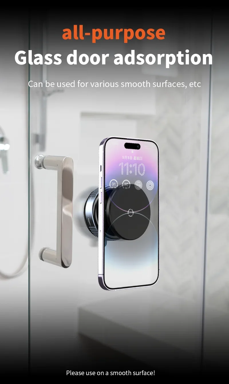 3.Vacuum Suction Technology: Features an upgraded vacuum suction base for a strong, reusable hold without adhesive or charging. Easily attaches to any flat surface.