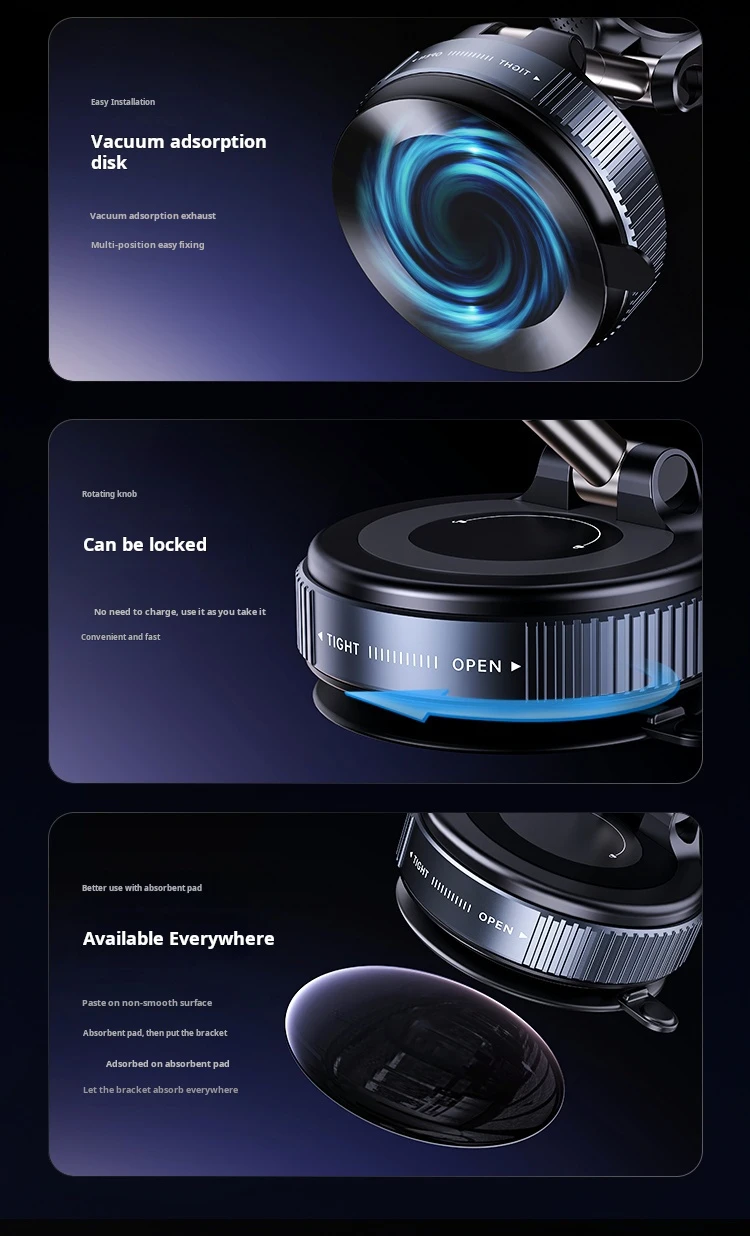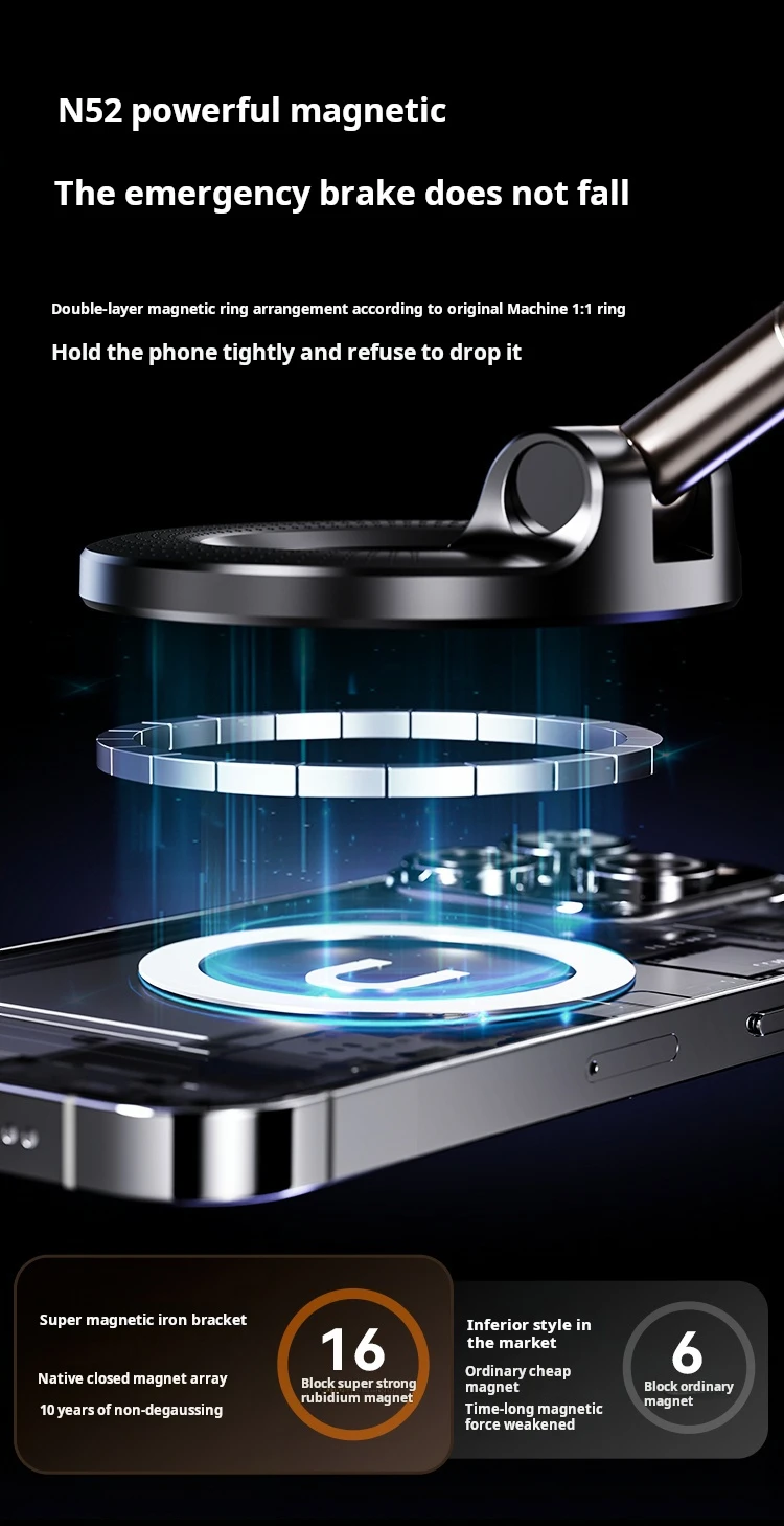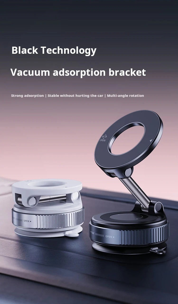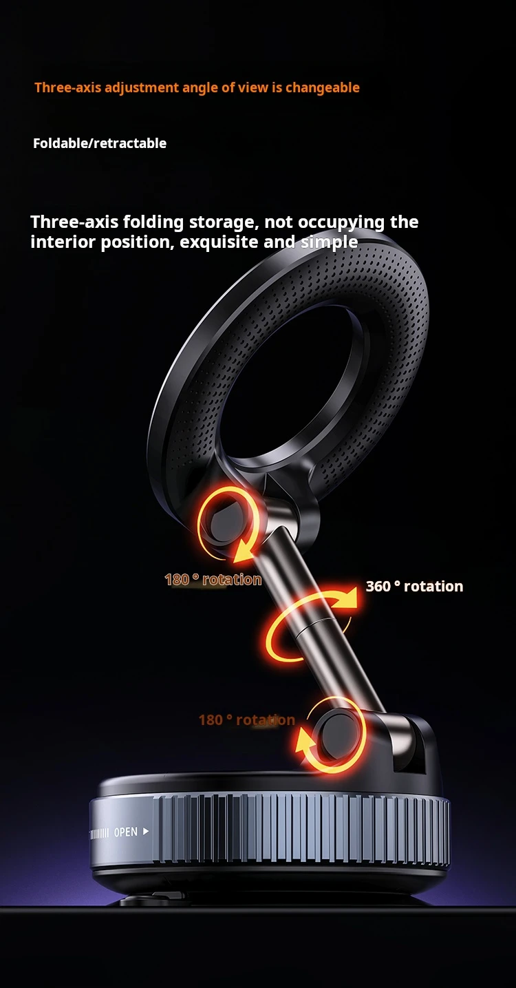 X68 Magnetic Car Phone Holder, 360° Rotatable Foldable Suction Cup Mount with Vacuum Base for iPhone Samsung Universal